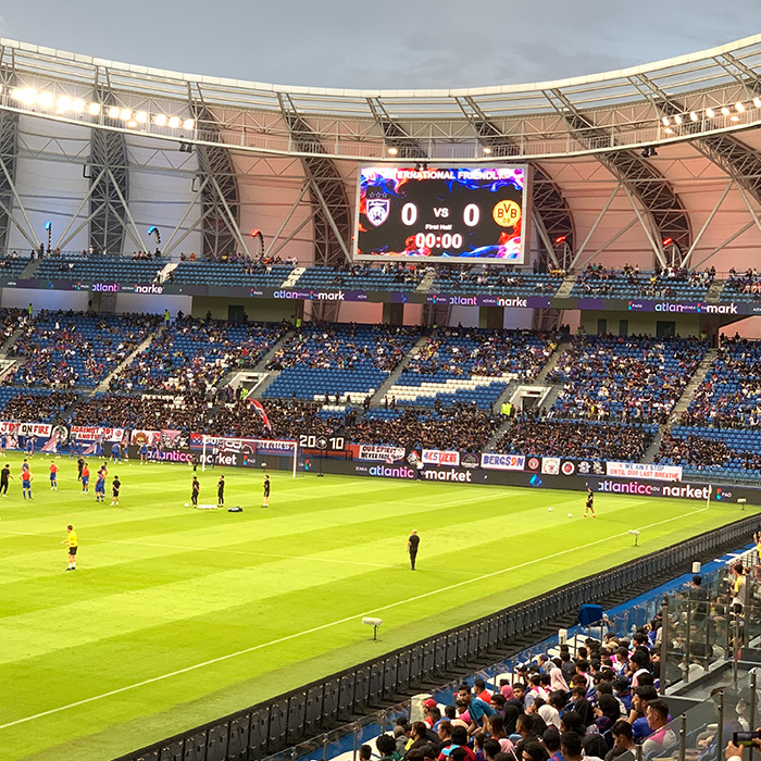 Salam guys! Kepada penggemar pasukan bola sepak tempatan, vlog ini untuk korang. Pada 28 November 2022, saya telah berkesempatan untuk menonton perlawanan persahabatan antarabangsa di antara Johor Darul Takzim (JDT) menentang Borussia Dortmund. Ini adalah pertama kali saya menjejakkan kaki ke stadium Sultan Ibrahim JDT (atau nama singkatannya SSI). Stadium ini terletak di Iskandar Puteri dan berdekatan dengan Gelang Patah, Johor (bukan di tengah-tengah bandar JB).